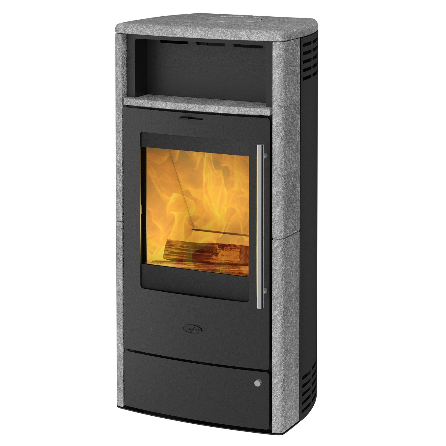 Fireplace Kaminofen Fireplace Torino Dauerbrandofen Stahl Schwarz Speckstein, 6 kW, Kaminofen