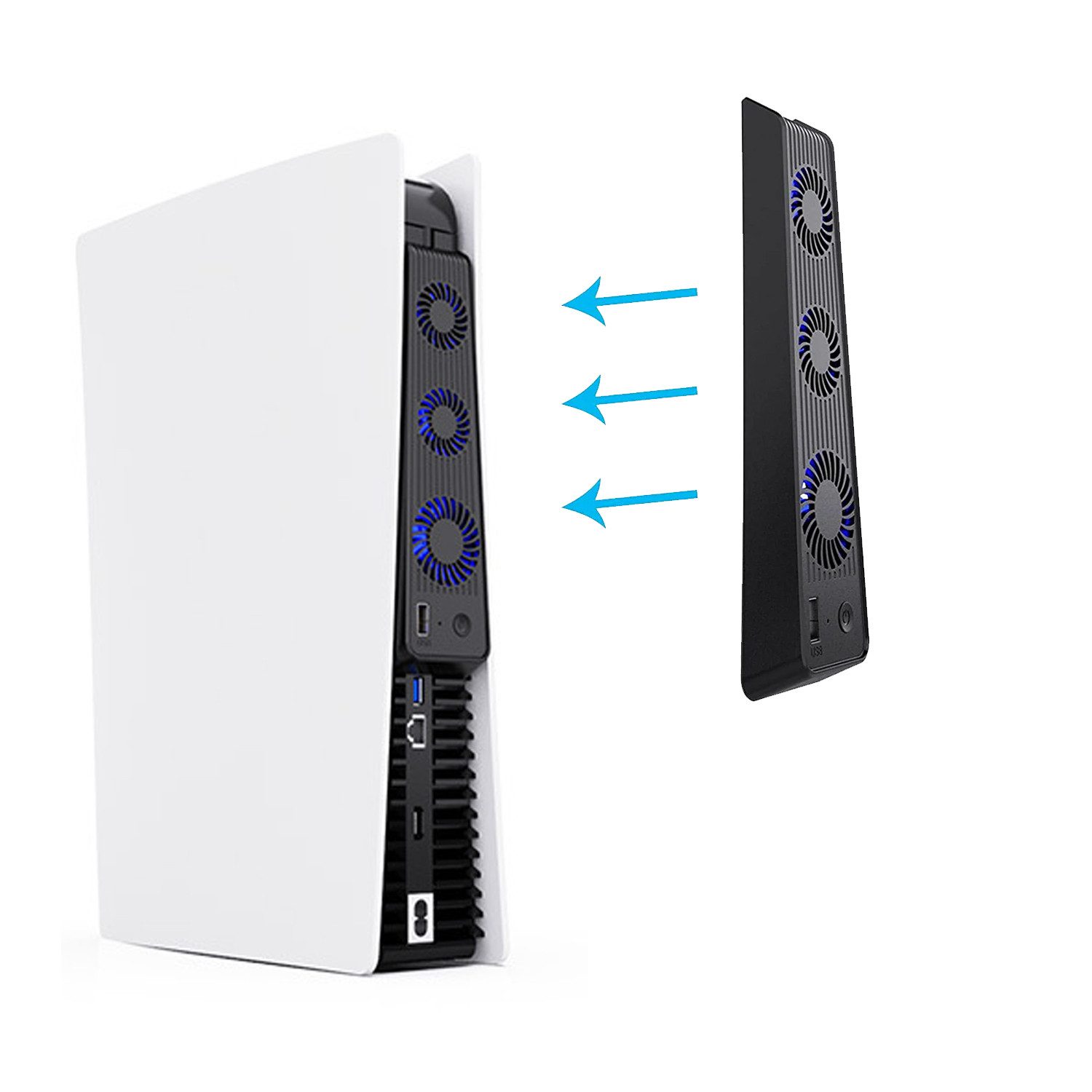 KINSI PS5 Mainframe-Kühlgebläse, PS5 Cooling Lüfter,Mit 3 Ventilatoren Controller (Mit externem,USB-Anschluss)