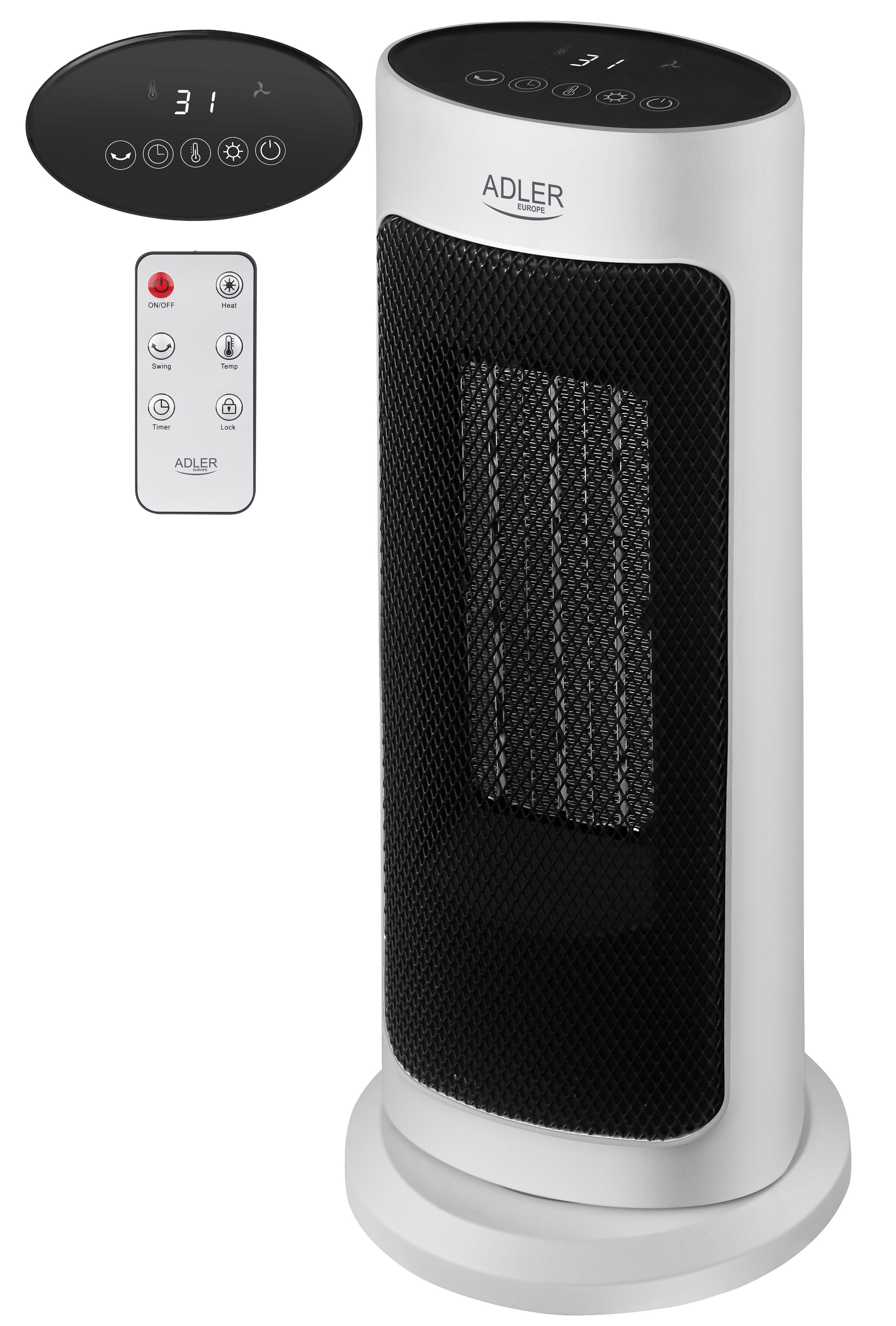 Adler Keramikheizlüfter AD-7738, 2000 W, LED Touch Display,12h Timer,Fernbedienung