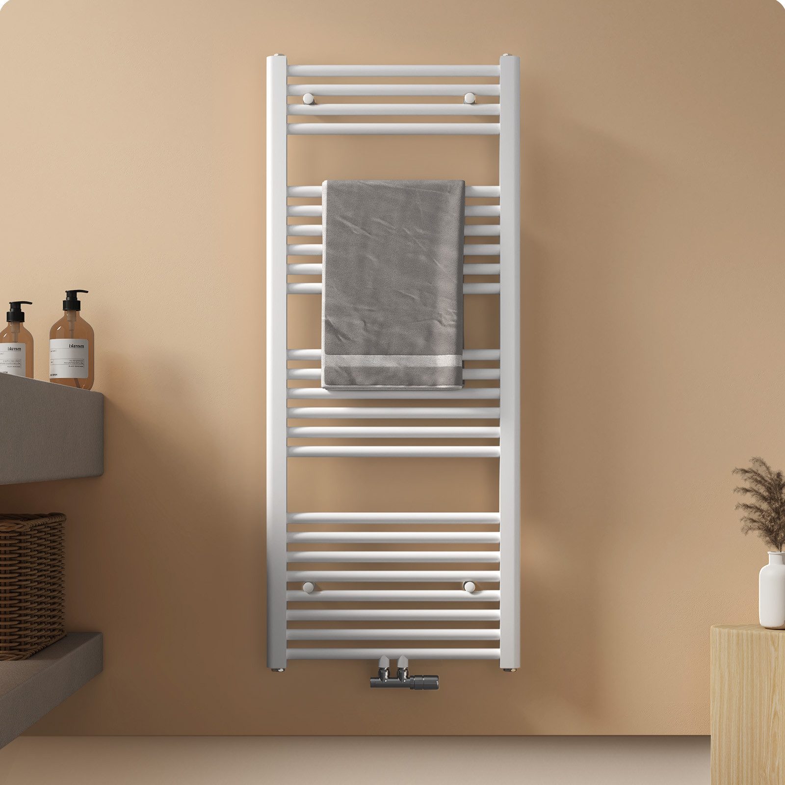 EMKE Badheizkörper Handtuchtrockner Handtuchwärmer Mittelanschluss, Weiß Bad-Heizkörper Bad Handtuchhalter