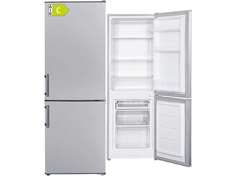PKM Kühl-Gefrierkombination EEK C Silber Kühlschrank 143 x 49 cm Kühl-Gefrierkombination (C, 124 kWh, 142,5 cm hoch, Silber)