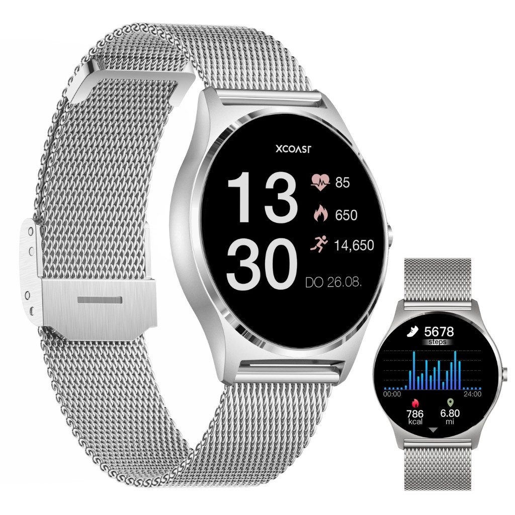 XCOAST JOLI Damen Smartwatch (3,9 cm/1,3 Zoll, IOS ANDROID) Fitnesstracker und Frauensportuhr, neueste Generation, 3-tlg., milanaise Edelstahlarmband, Schnellwechselfunktion, Silber, IP68 wasserdicht, Herzfrequenz, Blutdruck, Blutsauerstoff, Schlaf