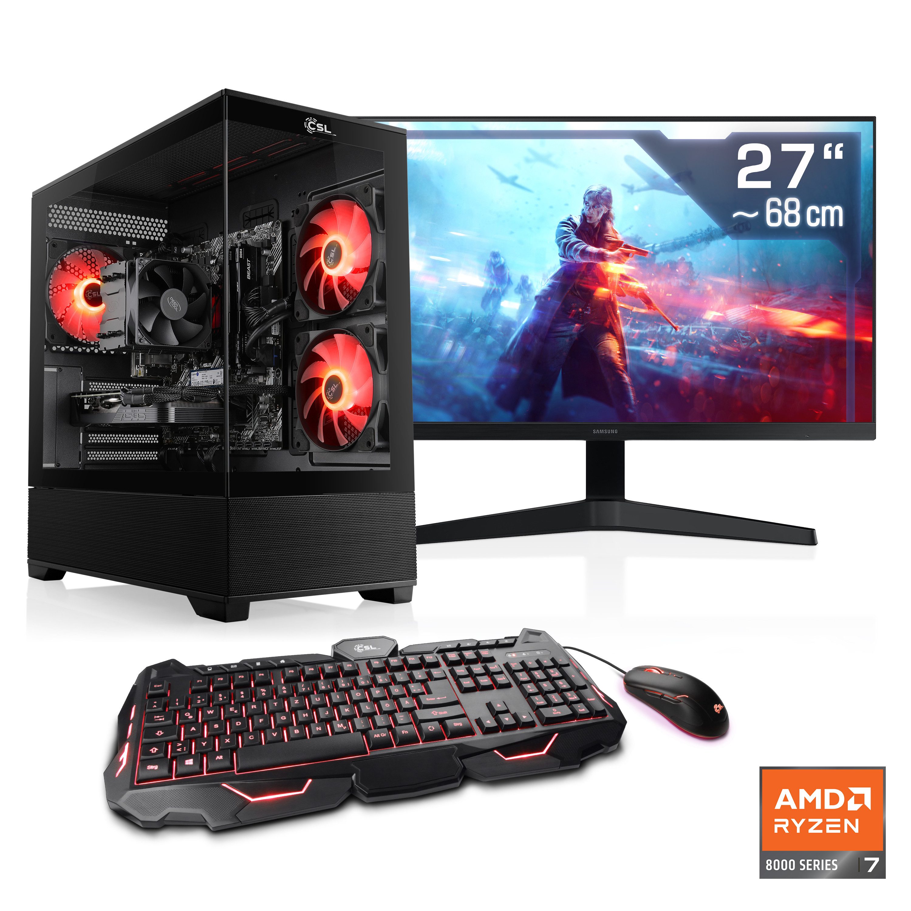 CSL AeroVision V24428 Gaming-PC-Komplettsystem (27", AMD Ryzen 7 8700F, GeForce RTX 3050, 32 GB RAM, 1000 GB SSD)