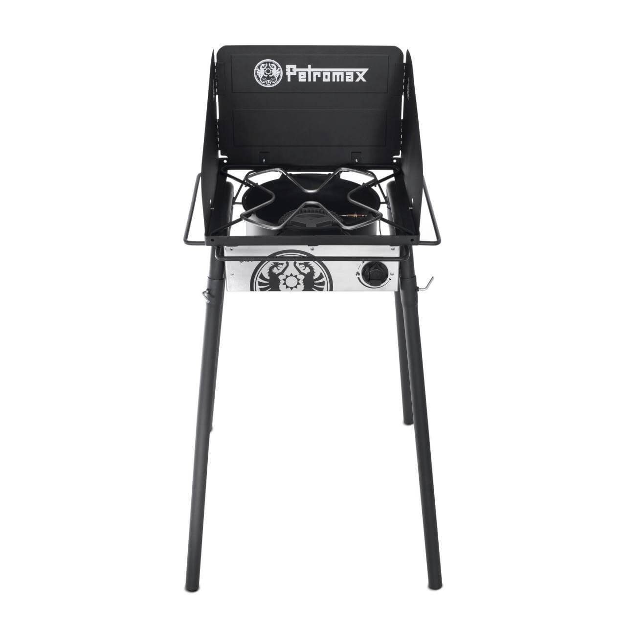 Marke: PetromaxKonzentriertes Drachenfeuer mit 5 kW Leistung – Der kleine Gastisch mit starkem Einzelbrenner Für Gusseisen und Schmiedestahl gemacht: Der aus hauseigener Entwicklung stammende Petromax Gastisch liefert mit leistungsstarkem 5 kW Brenner Hitze direkt auf den Punkt. Nach dem Entzünden der Gasflamme bringt er deinen Feuertopf unmittelbar auf Temperatur und du kannst mit dem Draußen-Kochen starten. Dabei gibt der unter der Kochfläche verborgene Rundbrenner die Hitze optimal ab und unterstützt vor allem die ideale Wärmeverteilung und -speicherung deines Gusseisens. Auf der abnehmbaren Kochgeschirrauflage kannst du alle Petromax Pfannen sowie Feuertopfmodelle ab der Größe ft3 zum Einsatz bringen. So entfaltest du in Kürze volle Feuerkraft in deiner Draußen-Küche. Drücken, drehen, zünden – Rauchfreies Kochabenteuer mit Propangas Der Petromax Gastisch leistet dir überall treue Dienste, denn unter Einsatz handelsüblicher Propangasflaschen erzeugt der brandheiße Kocher draußen zuverlässig die notwendige Feuerkraft. Das kombinierte Bedienelement mit integriertem Piezozünder öffnet die Gaszufuhr und liefert dir auf Knopfdruck den Funken, der dein Feuer entfesselt. Gleichzeitig wird durch ein Verdrehen des Schalters die stufenlose Hitzeregulierung möglich. Für deine zusätzliche Sicherheit sorgt die integrierte Flammenüberwachung: Sollte dein Feuer versehentlich erlöschen, so wird die Gaszufuhr automatisch unterbrochen. Der mitgelieferte 50 mb Druckregler sichert dir während des Betriebes einen konstanten Gasfluss und erzeugt so ein besonders gleichmäßiges Flammenbild für rauch- und funkenfreies Kochen unter freiem Himmel. Der kleine Petromax Gastisch: Robuster Gaskocher für zu Hause oder unterwegs Egal ob allein auf deinem Balkon, im Garten mit der Familie oder während des Freunde-Wochenendes in der Natur: Mit einer Traglast von maximal 80 kg und einer Fläche von 45 x 45 cm ist der Petromax Gastisch eine stabile Kochgrundlage für jedes Abenteuer. Seine Konstruktion greift zudem das bewährte Bauprinzip der Petromax Feuertopf Tische auf: Auf einer angenehmen Arbeitshöhe von 87 cm kannst du deine Mahlzeiten locker aus der Hüfte zubereiten. Kochausrüstung wie Grillzange, Handschuhe und Geschirrhandtuch hast du – dank der umlaufenden Haltebügel – stets zur Hand. Gleichzeitig bleibst du immer flexibel, denn die Standbeine lassen sich mit nur wenigen Handgriffen lösen. So bringst du deinen Petromax Gastisch schnell auf ein kompaktes Transportmaß für den Kofferraum oder das Wohnmobil und er folgt dir überall hin. Unter freiem Himmel schirmt der abnehmbare Windschutz deine Gasflamme zusätzlich effektiv ab und spart dir wertvolle Kochenergie. Stufenlose Reglung der Gasflamme Belastbar bis max. 80 kg Umlaufend angebrachter Haltebügel Abnehmbarer Windschutz Standfuß ist abnehmbar Abnehmbaren Kochgeschirrauflagen Arbeitsfläche 45 x 45 cm Arbeitshöhe: 87 cm Piezo-Zündung
