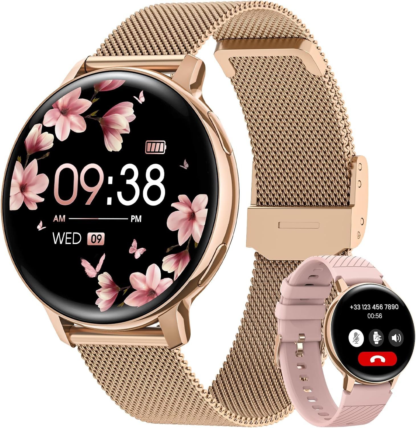 NAIXUES Damen's Telefonfunktion Fitness-Tracker IP68 wasserdicht Smartwatch (1,39 Zoll, Android/iOS), mit austauschbarem weichem Silikonarmband, mit menstruationszyklus Pulsuhr SpO2 Schlafmonitor Schrittzähler