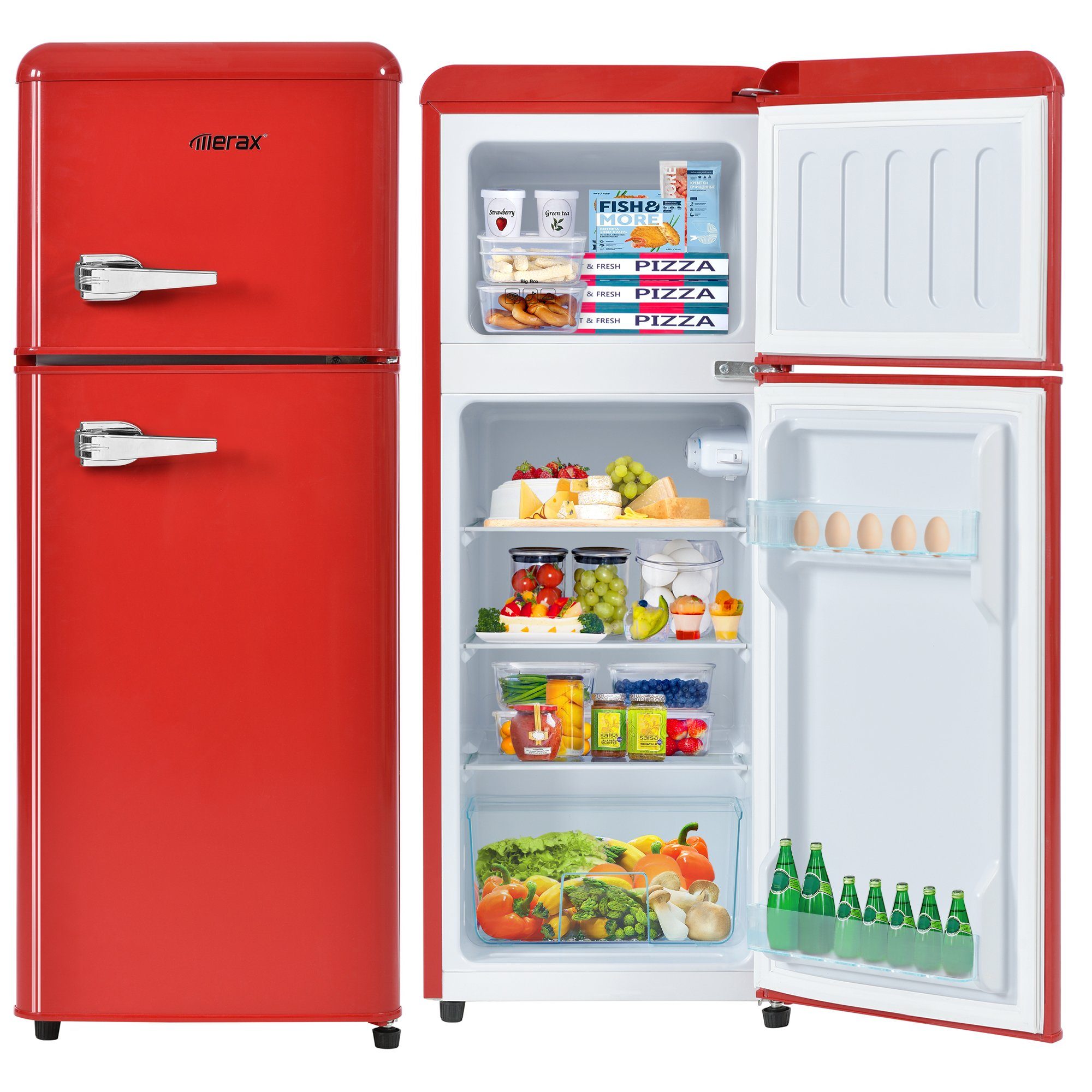 Merax Kühlschrank Retro Kühl-/Gefrierkombination BCD-102, 101 cm hoch, 41 cm breit, 92 Liter, Metall Türgriff, verstellebare Ablage und Füße