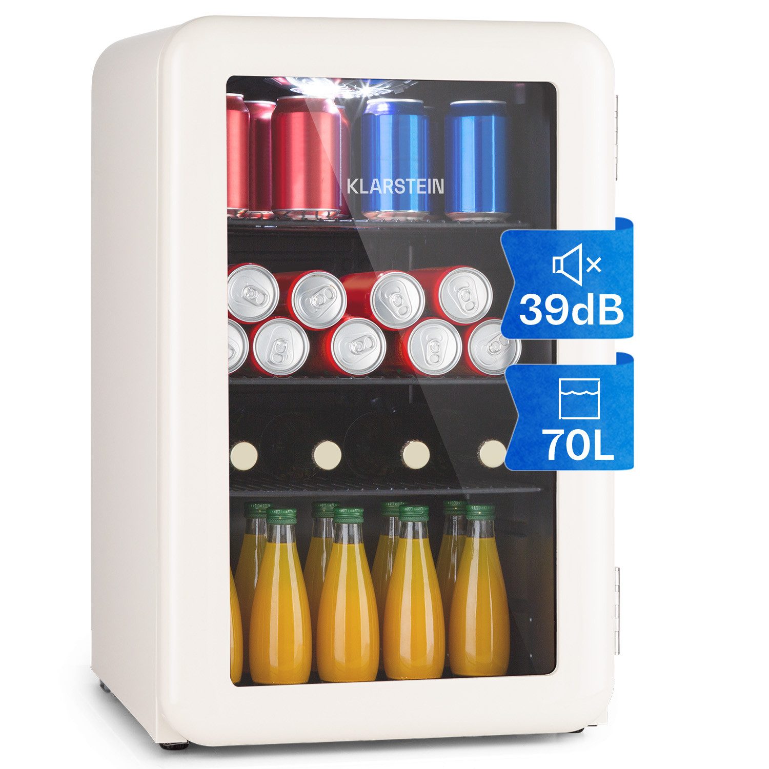 Klarstein Getränkekühlschrank HEA13-PopLife-65-cr 10046079, 69 cm hoch, 44 cm breit, Bier Hausbar Getränkekühlschrank Hotel Mini Fridge