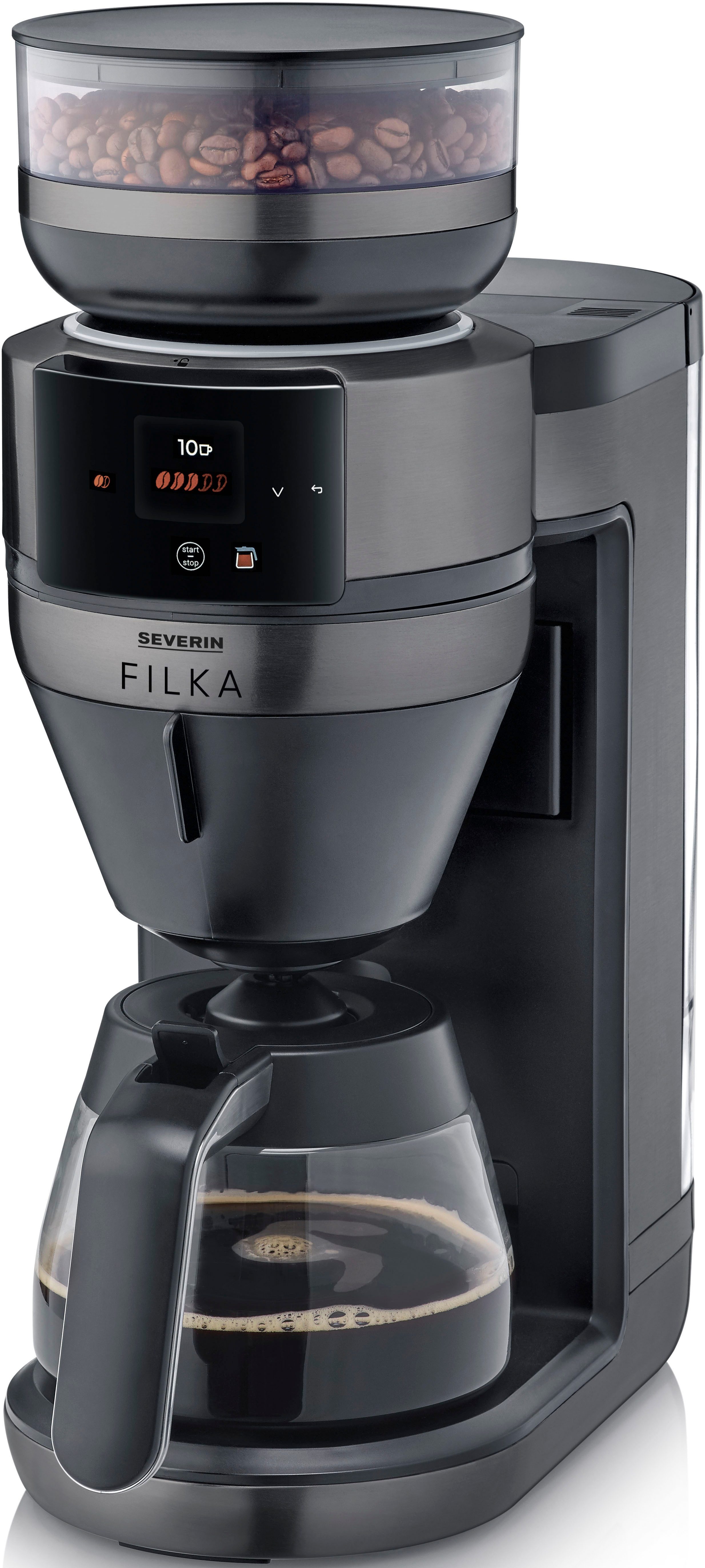 Severin Kaffeemaschine mit Mahlwerk KA 4854 FILKA (2. Generation), Filterkaffee-Vollautomat, 1,4l Kaffeekanne, Papierfilter, Permanentfilter 1x4, mit Glaskanne