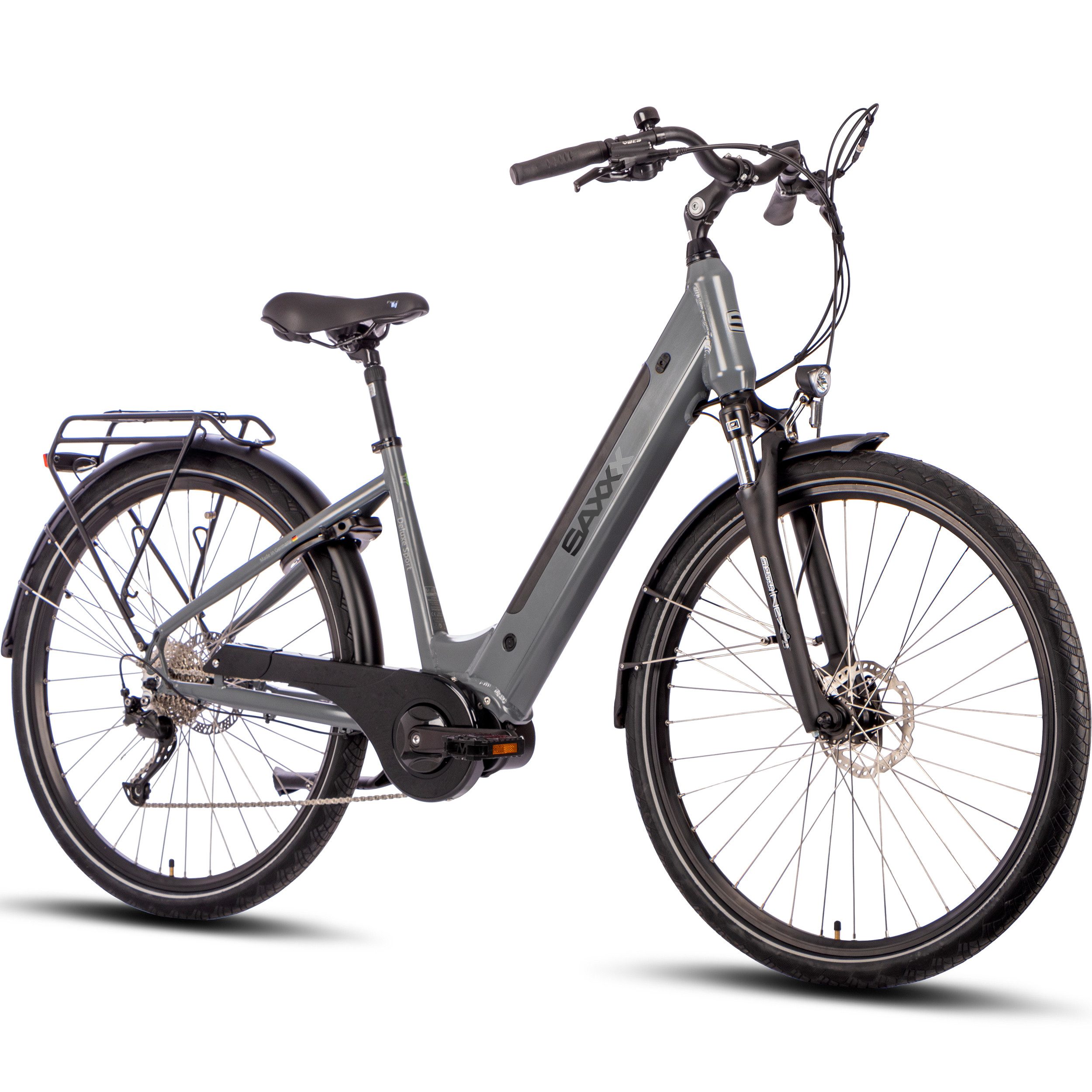 SAXXX E-Bike Trekkingrad Deluxe Sport Wave – 28" E-Bike, Mittelmotor, bis 100 km Reichweite, 9 Gang Shimano Alivio Schaltwerk, Kettenschaltung, Mittelmotor, 418 Wh, Für Damen & Herren – Federgabel, Gepäckträger, Scheibenbremsen