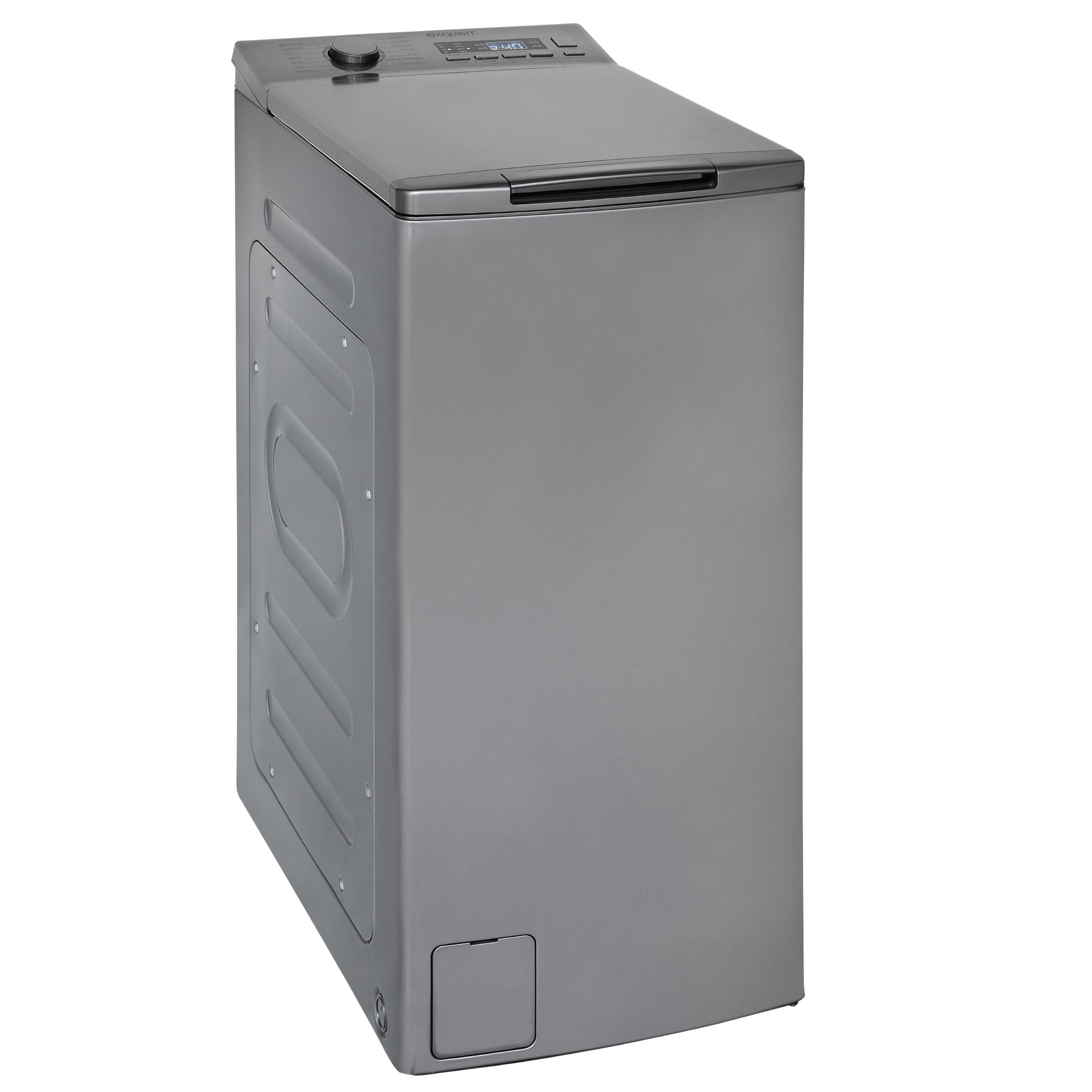 exquisit Waschmaschine LTO1207-030A silber-dunkel, 7,5 kg, 1200 U/min, Digitales Display, leicht zu reinigende Einspülkammer