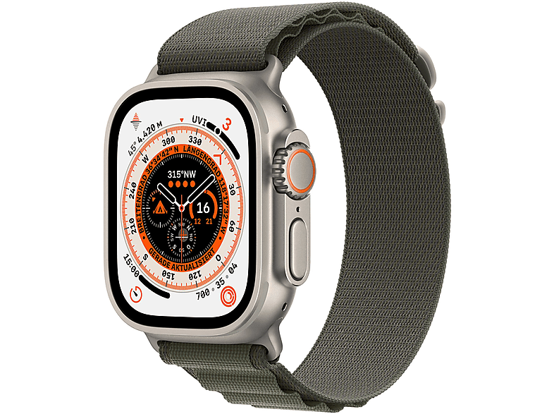 APPLE ULTRA GPS+CEL 49 TIT W GREEN ALPINE LARGE Smartwatch Titan Gewebe, 165 | 210 mm, Alpine grün im Onlineshop von MediaMarkt kaufen. Jetzt bequem online bestellen.