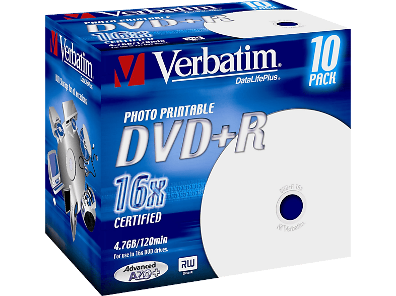 Marke: VerbatimVERBATIM 43508 Printable Bedruckbar DVD+R 16X Rohling im Onlineshop von MediaMarkt kaufen. Jetzt bequem online bestellen.