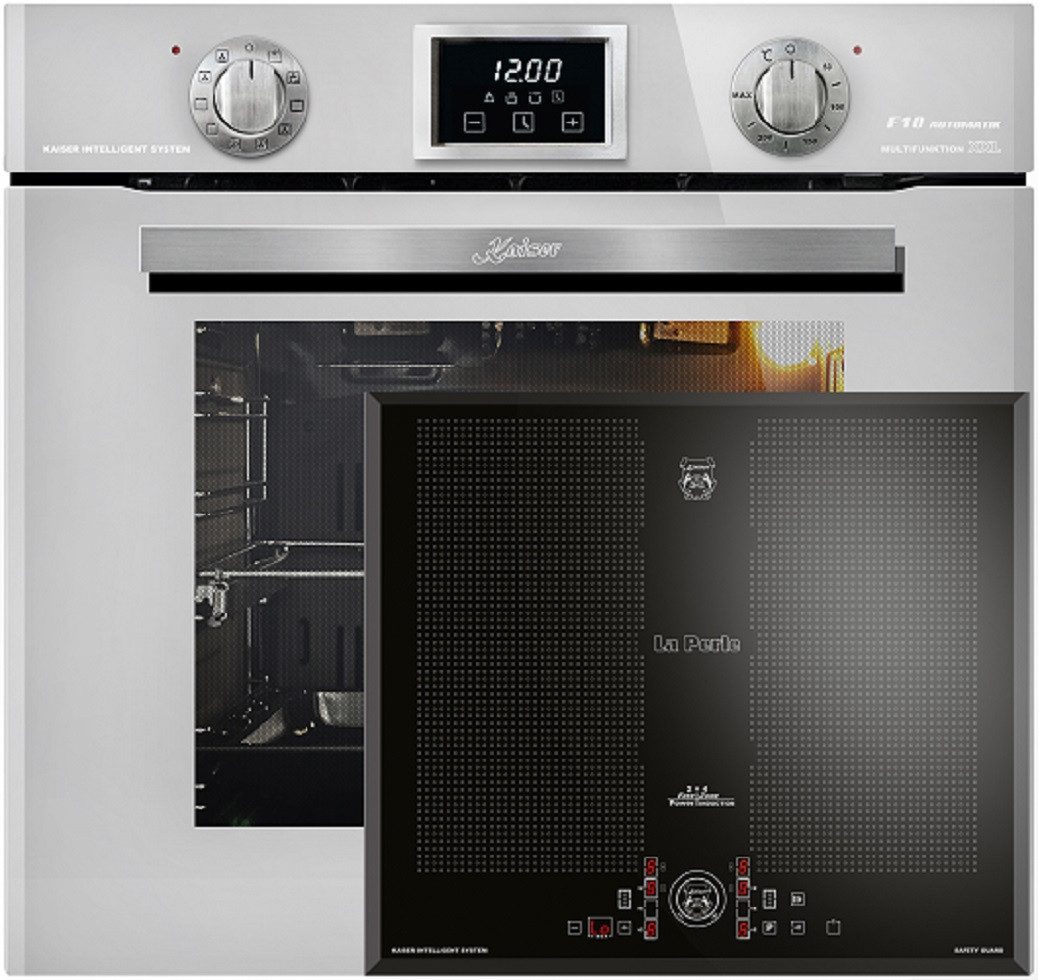Kaiser Küchengeräte Backofen-Set Herd Set Autark Elektro Backofen, Autark, 79L, Drehspieß, 10 Funktionen mit Induktions-Kochfeld 60 cm FREE ZONE mit 2 FLEX Induktions-Zonen EH 6326 W+KCT 61 FI..,., mit 1-fach-Teleskopauszug