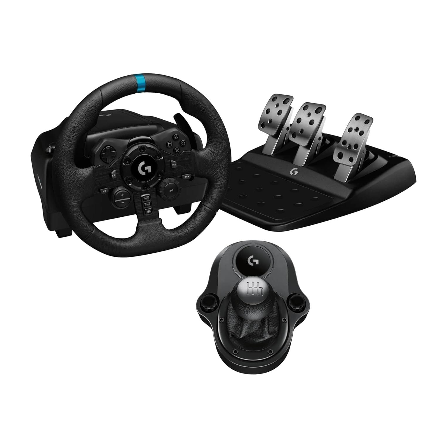 Logitech G923 mit Pedalen und Schaltung Playstation PS5, PS4, PC Windows Gaming-Lenkrad (Driving Force Komplett Set mit 6 Gänge Schaltknauf Schalthebel, Rennlenkrad, Bremspedale)