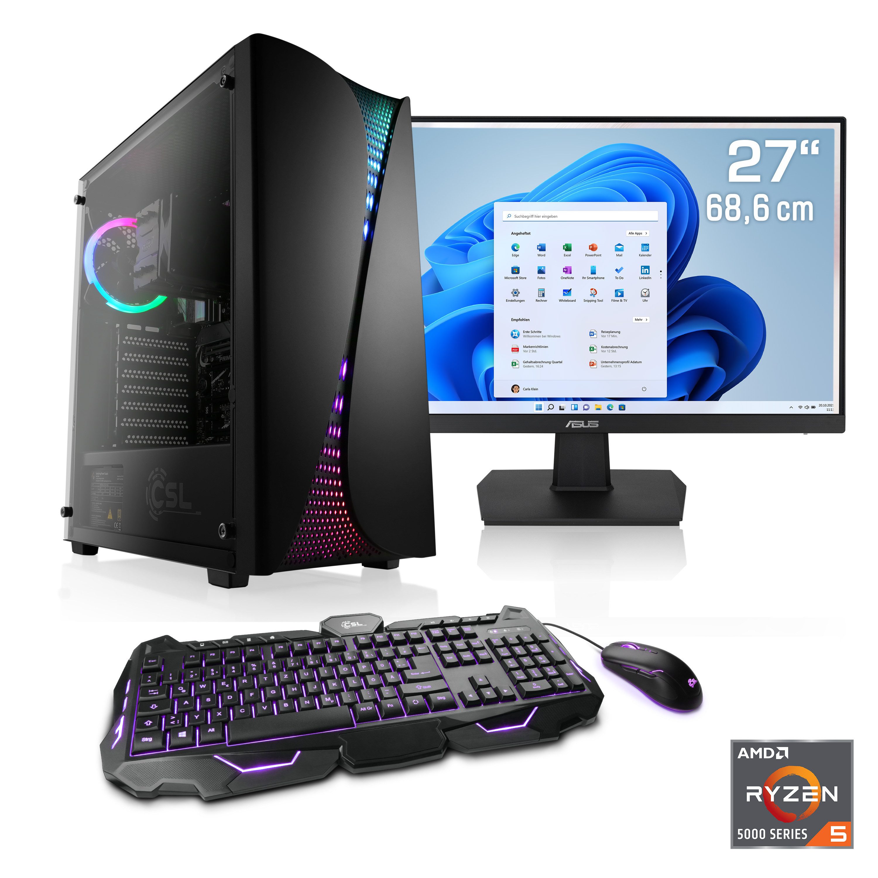 CSL Levitas V26320 Gaming-PC-Komplettsystem (27", AMD Ryzen 5 Ryzen 5, AMD Radeon Graphics, 32 GB RAM, 1000 GB SSD)