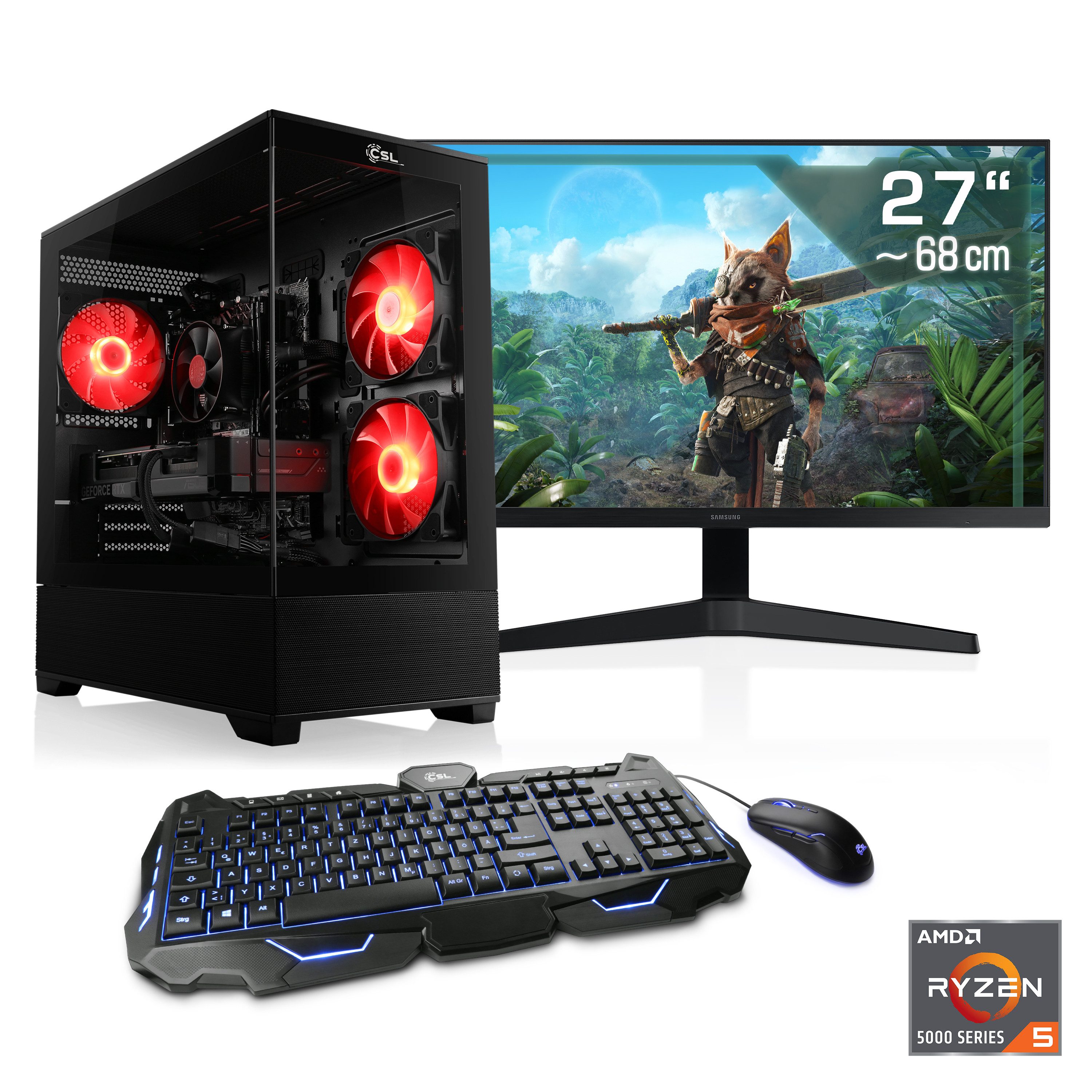CSL AeroVision V24357 Gaming-PC-Komplettsystem (27", AMD Ryzen 5 5600, GeForce RTX 3050, 16 GB RAM, 500 GB SSD)