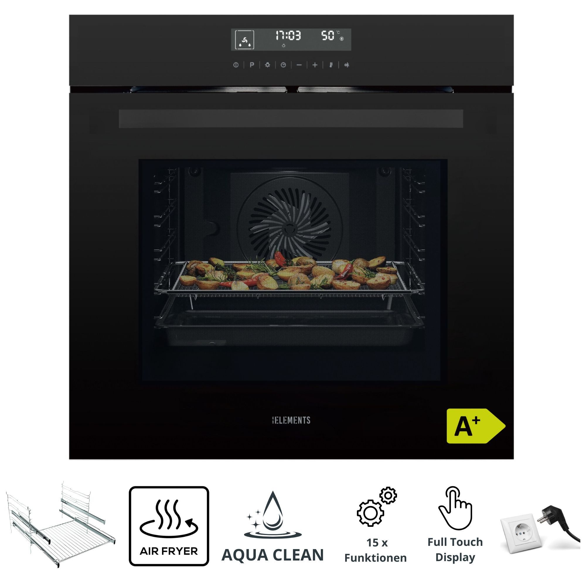 KB Elements Einbaubackofen 15 x Funktionen, Airfryer Funktion, Full Touch Display, AQUA CLEAN, Air Fry, AQUA CLEAN,Full Touch,EEK A+