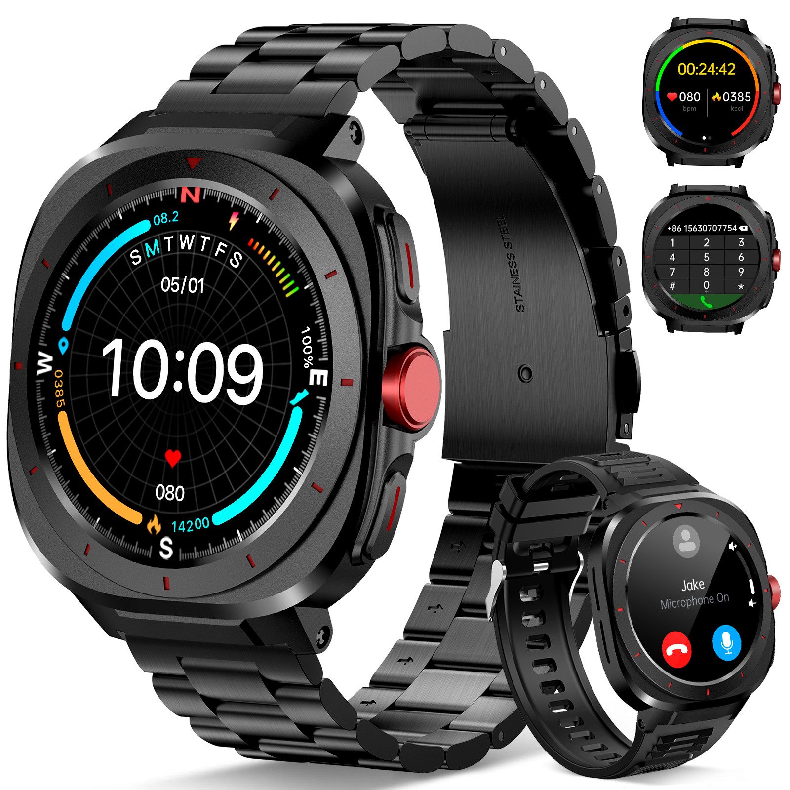 Yuede 2025 Neue Smartwatch Herren mit Telefonfunktion,1,39'' IPS Touchscreen Smartwatch (Lange Akkulaufzeit Outdoor Fitnessuhr cm/1,39 Zoll) Eingebauter Kompass im Zifferblatt, Sportuhr mit 24/7 Gesundheitsmonitor, Schlafmonitor, Wasserdicht bis 1 ATM, 150+ Sportmodi für Android iOS