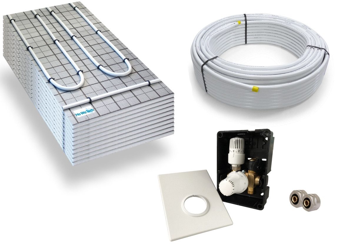 HoWaTech Fußbodenheizung TAC Warmwasser Fußbodenheizung Komplettset Regelbox TH-RTL, (Komplett Set), Nur 20 mm Aufbauhöhe + 16 mm Rohr