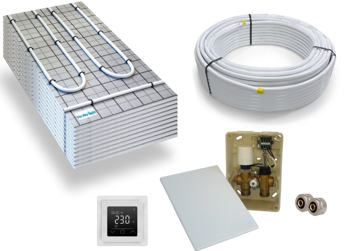 HoWaTech Fußbodenheizung TAC Warmwasser Fußbodenheizung Komplettset E-Regelbox WLAN Touch (w), (Komplett Set)