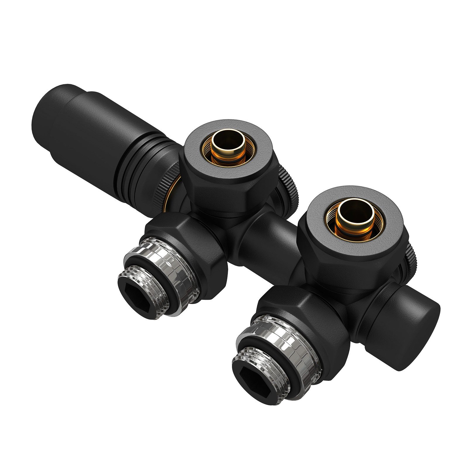 EMKE Heizkörperthermostat Anschlussarmatur Ventil mit Thermostat für Heizkörper, Hahnblock Heizungszubehör Eck- und Durchgangsform φ16xG1/2