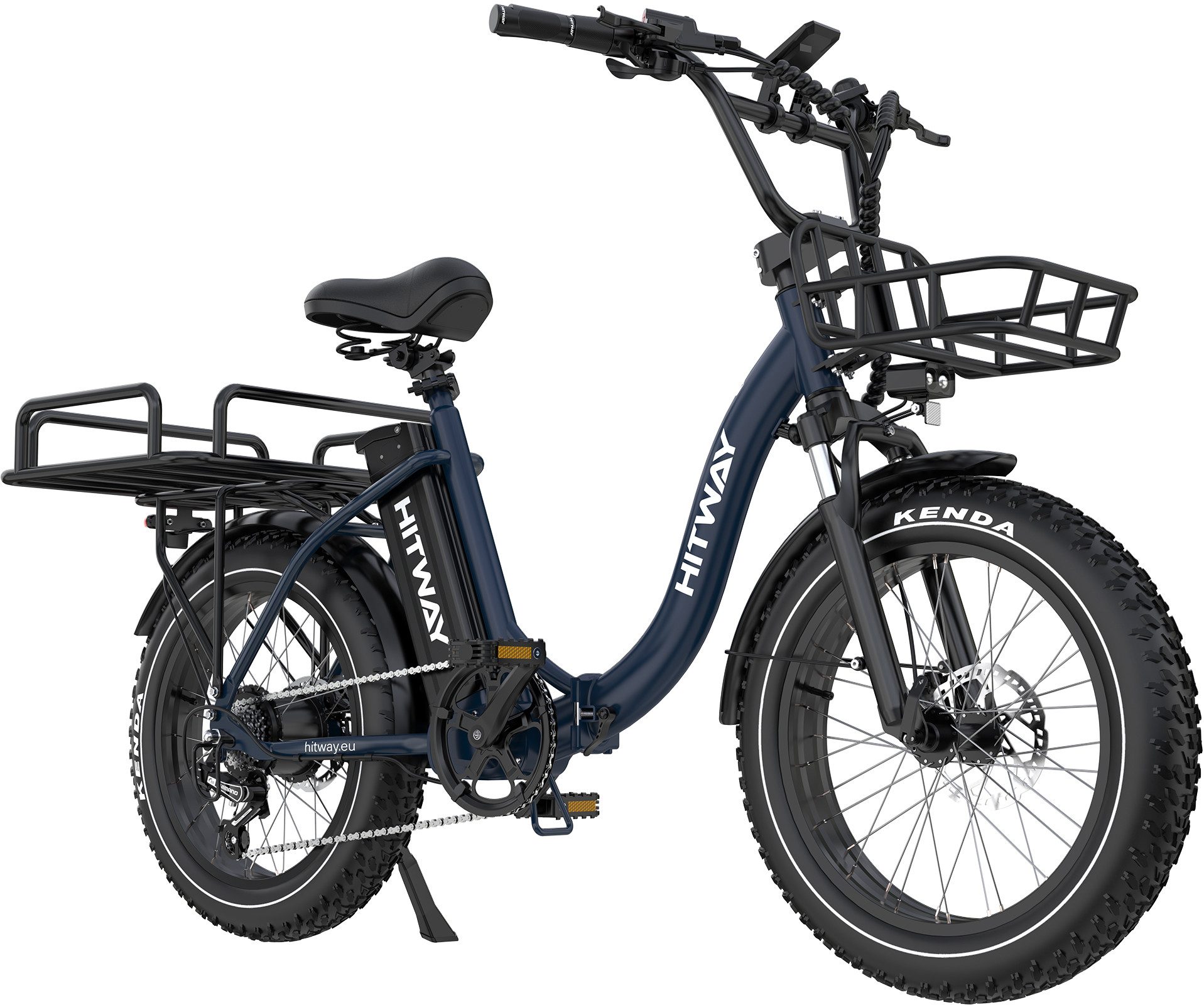 HITWAY E-Bike Faltrad 20*4,0 zoll Lasten-Elektrofahrrad mit 48V25Ah Akku bis 90-120km, 7 Gang shimano shimano Schaltwerk, Kettenschaltung, 250W Heckmotor, 1200 Wh, E-Klapprad mit 2 Körben, NFC, StVZO
