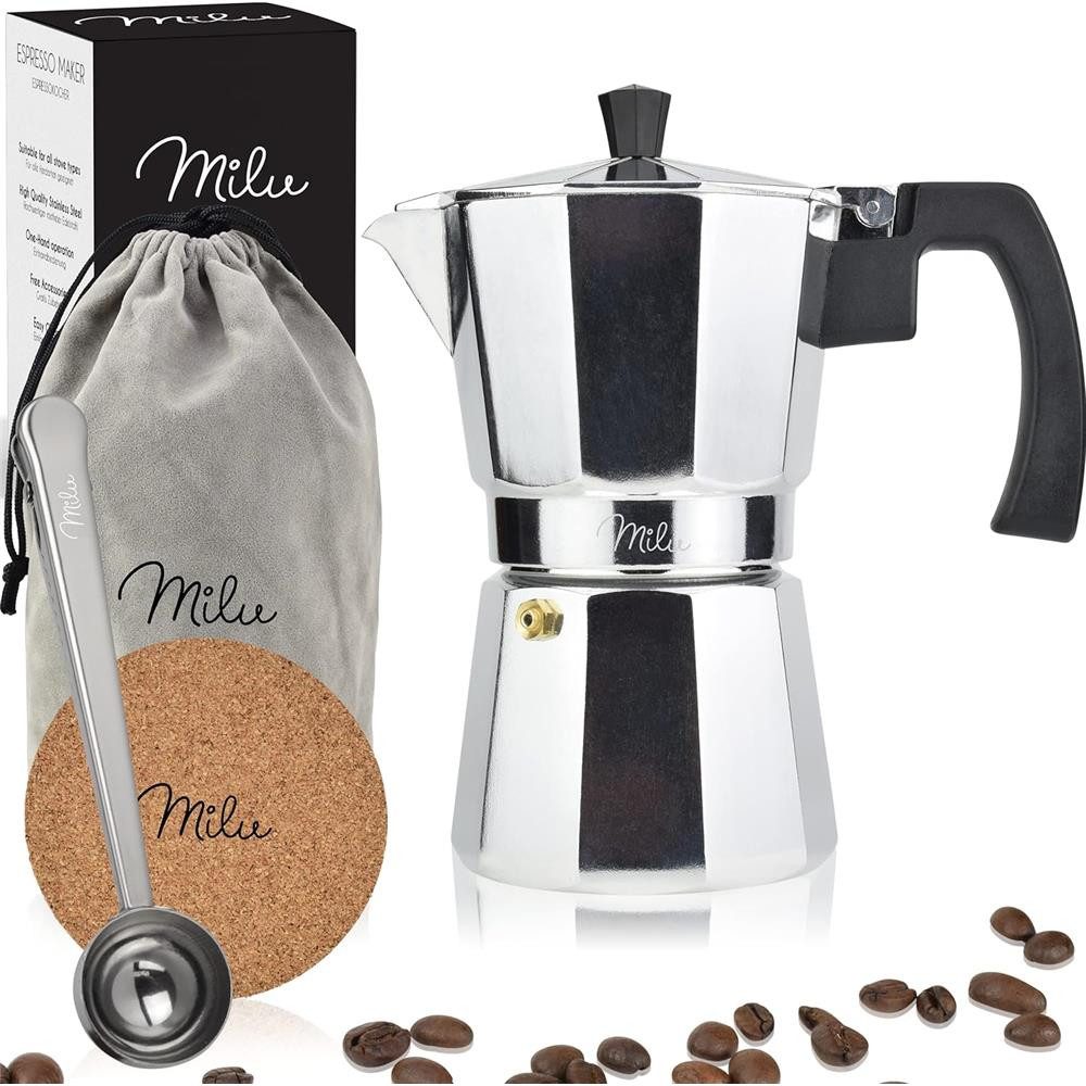 Milu Espressokocher, Mokkakanne, 6 Tassen, 300ml, Espressokanne, silber