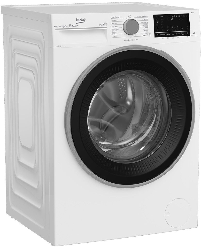 BEKO Waschmaschine B3WFU58415W1, 8 kg, 1400 U/min, Dampf, Multifunktionsdisplay, Mengenautomatik, Watersafe
