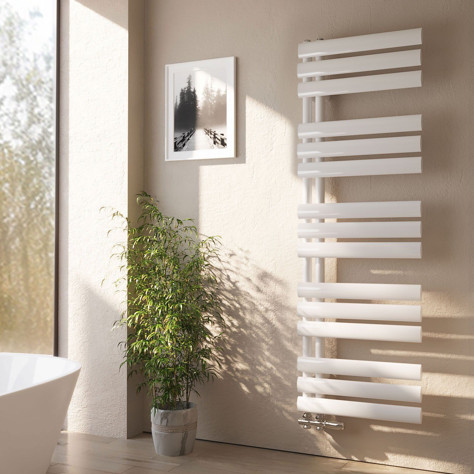 Marke: EmkeEMKE Badheizkörper-Ovalrohre ist aus hochwertigem Stahl umweltfreundlicher Lackierung für längere Lebensdauer.Das Flachrohr des Handtuchhalters erweitert die Kontaktfläche mit dem Handtuch, trocknet schneller und der Sterilisationseffekt ist besser. Das innovative einseitige Kanaldesign erleichtert das Aufhängen von Handtüchern.Design Badheizkörper: Wunderschöner Design-Heizkörper mit Handtuchhalter-Funktion. Erwärmt nicht nur den Raum, sondern sorgt auch für kuschelig-warme Handtücher nach dem Baden oder Duschen.Hohe Qualität: Gefertigt aus hochwertigem Stahl mit umweltfreundlicher Beschichtung, oxidations- und korrosionsbeständig. Nahtlose Schweißtechnik für eine besonders lange Lebensdaue.Leichte Montage: Fachkenntnisse sind für die Installation nicht notwendig. Einfach Halterung an die Wand schrauben und Heizkörper einhängen. Eine umfassende Installationsanleitung liegt bei. Eignet sich für die Aufhängung nicht nur im Badezimmer, sondern auch im Gäste-WC, Büro, Esszimmer, Flur, Schlafzimmer, Kinderzimmer, Wohnzimmer oder auf dem Dachboden.Abmessungen: In verschiedenen Größen und mit verschiedenen Leistungsstärken erhältlich. Höhe: 112 cm - 174 cm, Breite: 40 cm - 60 cm, Leistung: 388 Watt - 815 Watt.Technische Produktdaten:Hitzebeständige PulverbeschichtungAnschlussgewinde 1/2 ZollAbstand zwischen den mittleren Verbindungsnaben: 50 mmMaximaler Arbeitsdruck des Handtuchhalterheizkörpers: 5,3 barWandabstand (von der Wand bis zur Außenkante des Heizkörpers): 106~122 mmHandtuchhalter-Heizkörpermaterial: hochwertiger Baustahl (SPCC)CE-Zertifizierung, Wärmeleistung entspricht der Heizkörpernorm EN442Neue Schweißtechnologie zur Verhinderung von WasseraustrittEnergieart: zentral angeschlossenes WarmwasserDetaillierte Installationshinweise finden Sie im HandbuchGröße und Leistung: 1120x400x66mm, 388W, Raumbereich:6.5qm; 1430x400x66mm, 484W, Raumbereich: 8.1qm; 1740x500x66mm, 678W, Raumbereich: 9.7qm; 1740x600x66mm, 815W, Raumbereich: 8.7qm; Lieferumfang (ohne Ventil!):1x BadheizkörperMontageset+MontageanleitungHinweise: Bitte bestätigen Sie die gewünschte Größe der Badheizkörper, bevor Sie eine Bestellung aufgeben, um Bestellfehler zu vermeiden.Bitte überprüfen Sie nach Erhalt der Ware die Richtigkeit und vereinbaren Sie anschließend einen Termin für den Installateur zur Montage des Badheizkörpers.Der Versand innerhalb des deutschen Festlandes ist KOSTENLOS. Inselzustellung ist NICHT möglich. Der Versand erfolgt durch die Spedition oder den Paketdienst und die Zustellung erfolgt nur bis zur Bordsteinkante. Bitte geben Sie bei der Bestellung eine gültige Telefonnucmer für die Avisierung an.