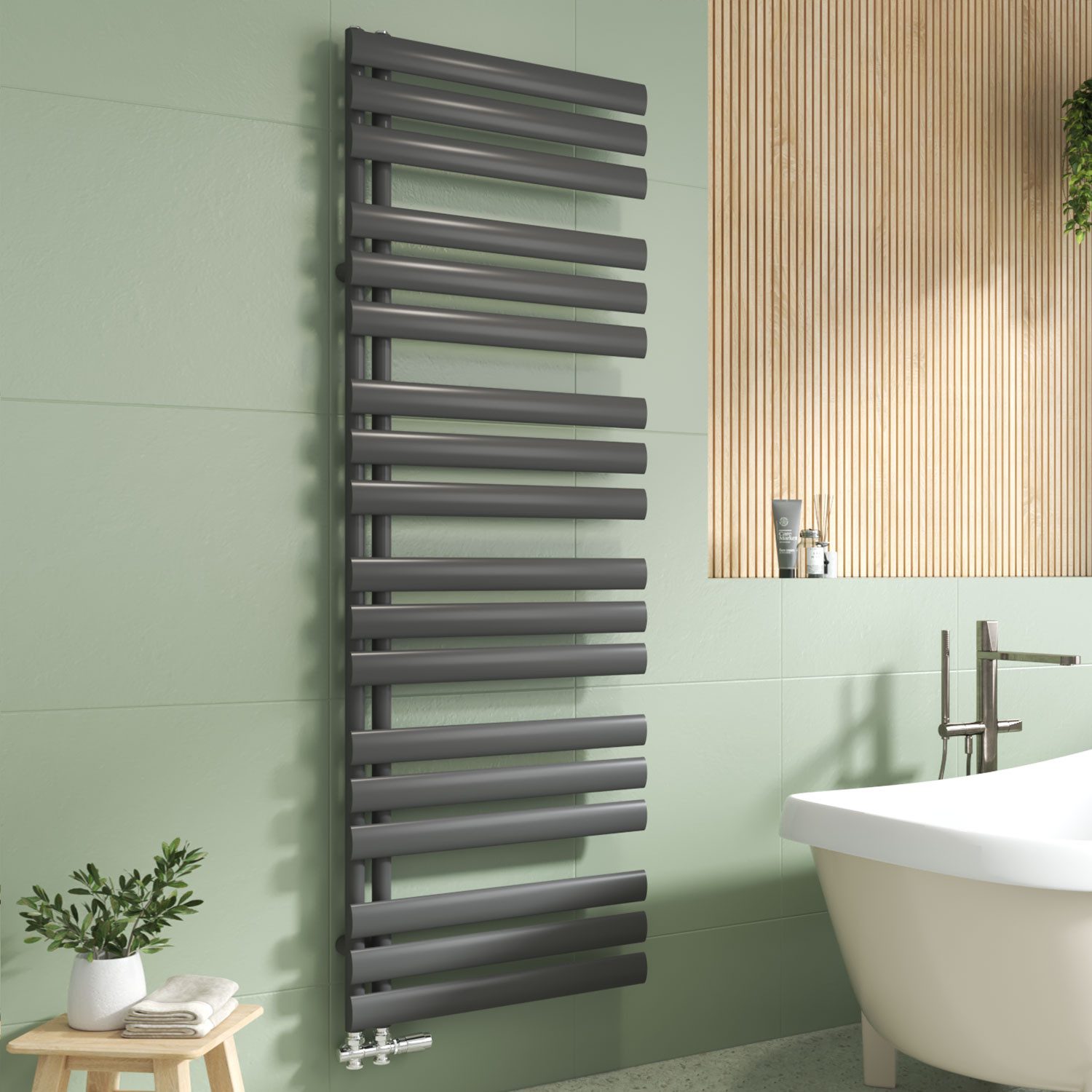 EMKE Badheizkörper Oval Röhren 388-815W Badheizkörper Handtuchtrockner Handtuchwärmer, Rohrheizkörper Vertikal Seitenanschlussfür Wasser